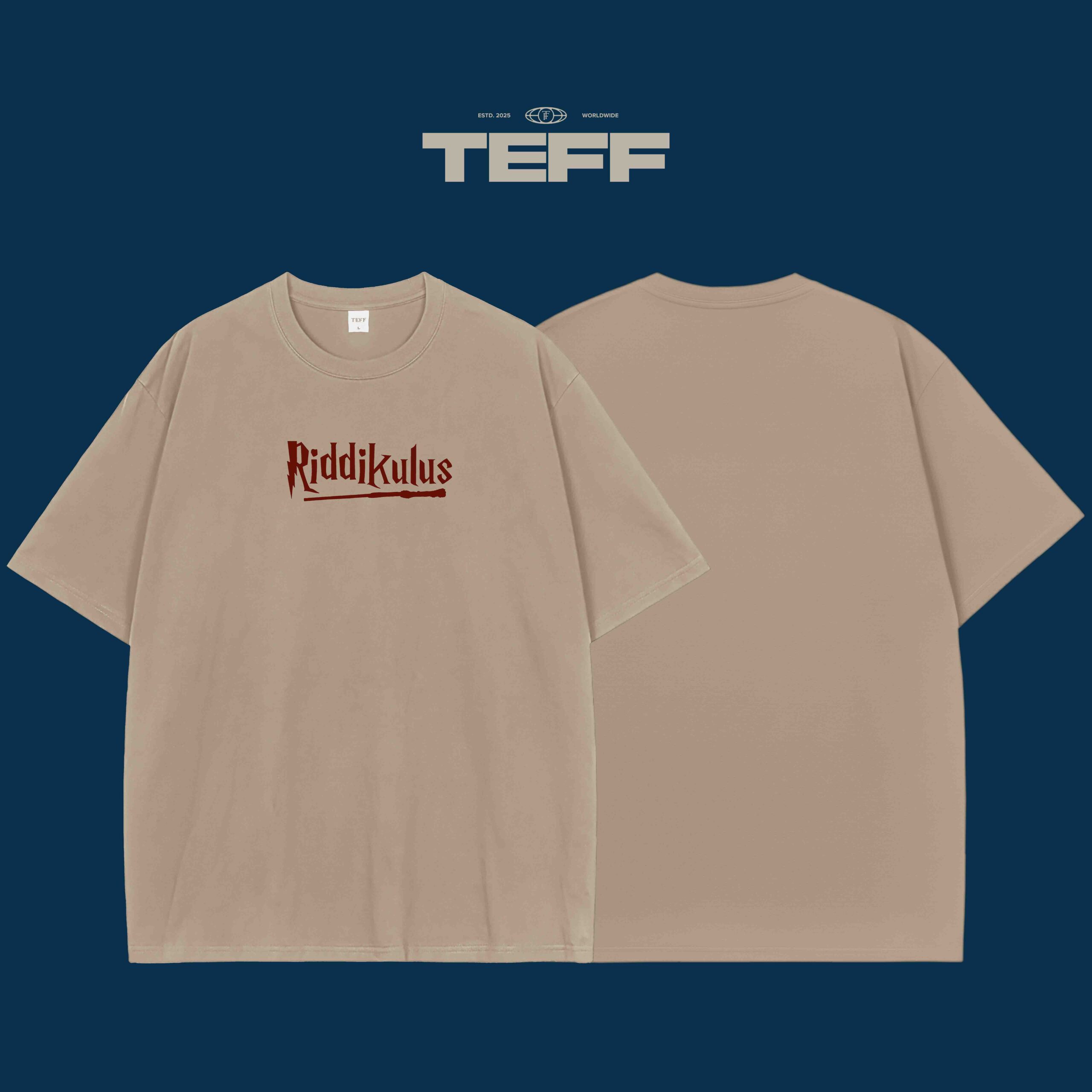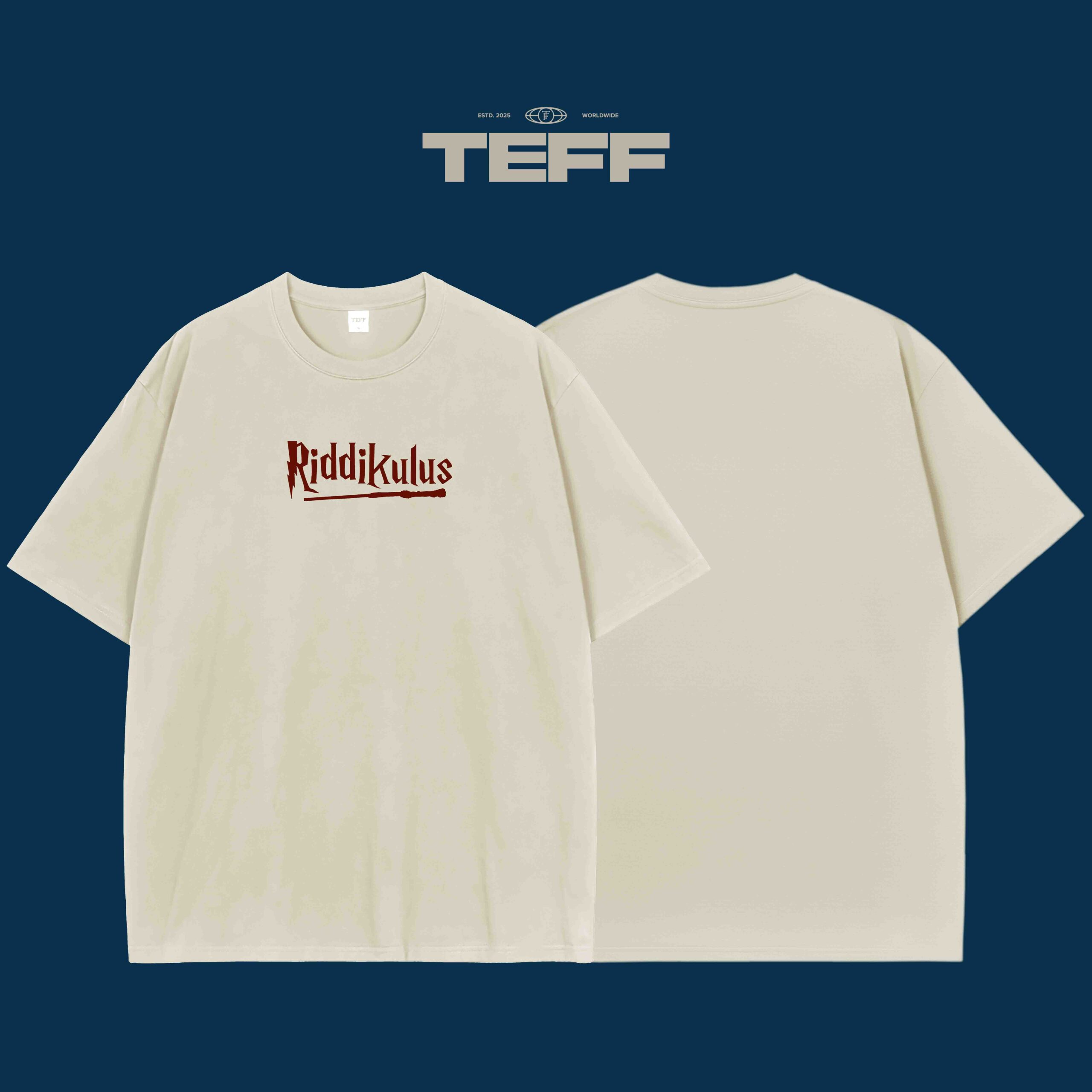 The Riddikulus T Shirt brings a touch of fantasy and fun to your wardrobe with a minimalist design inspired by the classic charm of magic. Made from soft and breathable premium cotton, it ensures all day comfort with a relaxed silhouette that moves effortlessly with you. The front features the word Riddikulus in an elegant wand motif that glows with nostalgia for timeless stories and unforgettable spells.